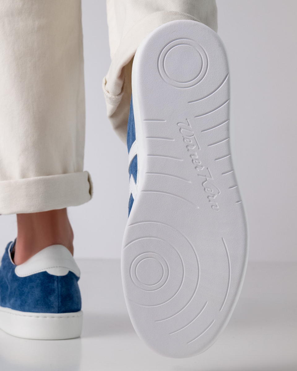 Material:    Wildleder / Nappaleder – jeans blau / weiß